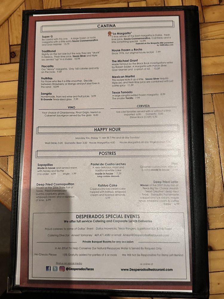 Overall, Desperados Mexican Restaurant Dos delivers a culinary experience that combines traditional Tex-Mex flavors with a modern twist. Whether you're looking for a casual lunch spot or a place to celebrate with friends and family, this restaurant is sure to satisfy your cravings for delicious Mexican cuisine.